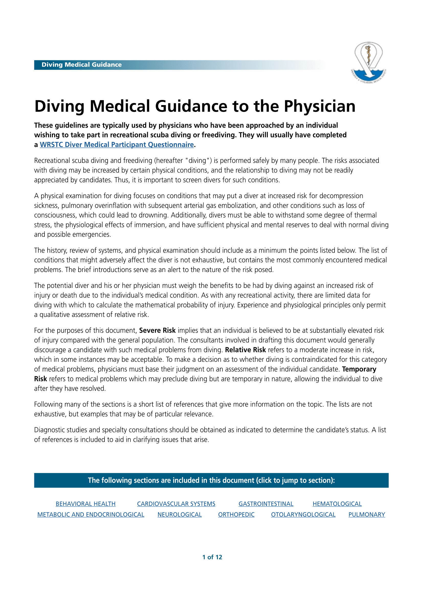 UHMS Diving Medical Guidance to the Physician