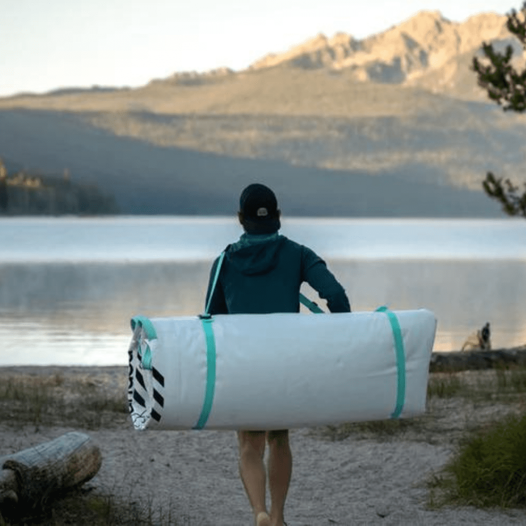 The POPup Dock is highly portable due to its inflatable design, which allows it to be easily deflated, rolled up, and transported in a compact form.