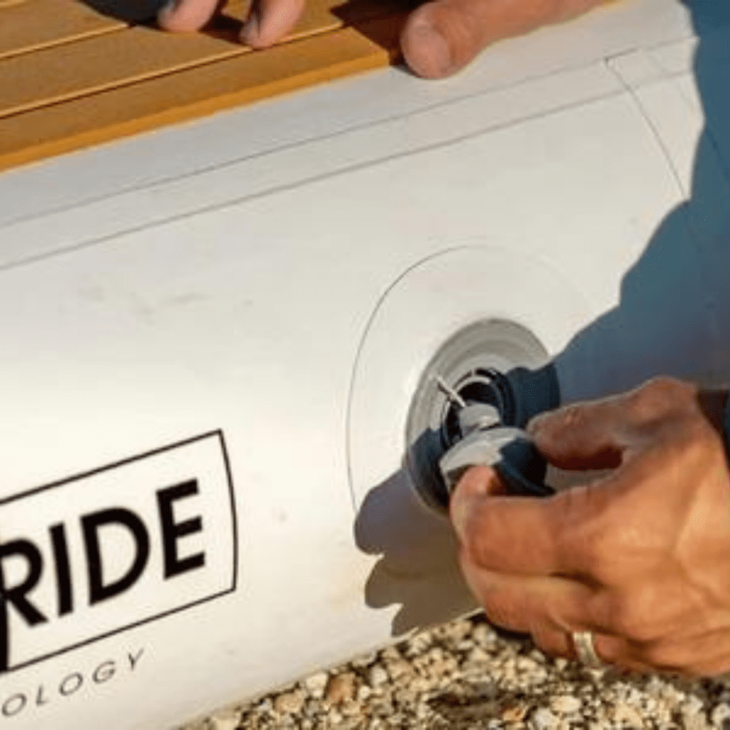 Inflating the POPup Dock is quick and easy, typically taking about 8-10 minutes with the included dual-action reversible hand pump.